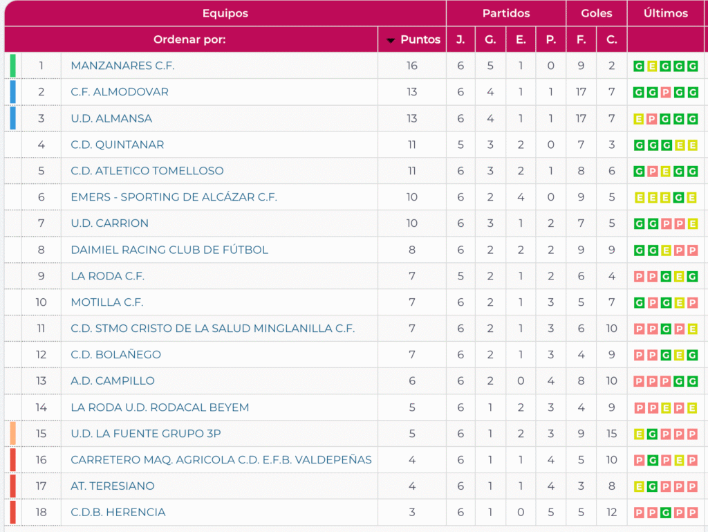 Con este resultado, el EMERS Sporting de Alcázar se sitúa sexto en la clasificación con 10 puntos, manteniendo su condición de invicto tras seis jornadas.